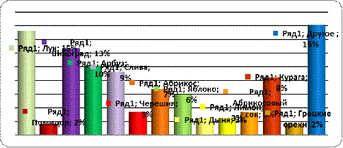 респондентов), сухофрукты (31% респондентов), соки (11% респондентов) и