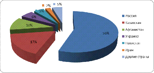 указан Афганистан - 12%, Украина - 5% и Индия - 1 респондент. % респондентов