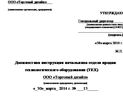 Положением об отделе продаж технологического оборудования ООО "Торговый