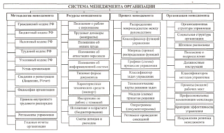 трудового распорядка и др.) и элементные (персонал, информация, техника,