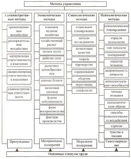 управления производством. Различают административные, экономические,