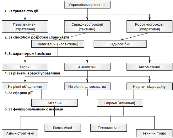 управлінських рішень та їх характеристика