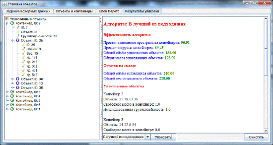 контейнеров для упаковки всех предметов. После процесса упаковки возможен