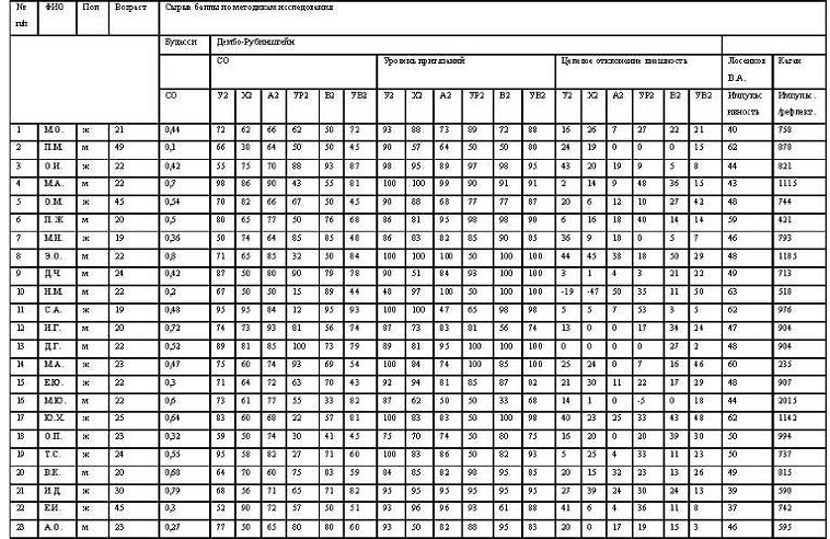 Общее количество испытуемых составило 30 человек, мужчины и женщины в возрасте