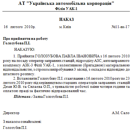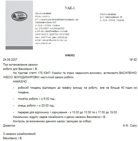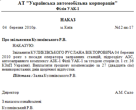 звільнення працівників, графік відпусток, оперативну інформацію про якісний