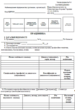 кадрових документів. Документаційне забезпечення роботи з кадрів є важливою