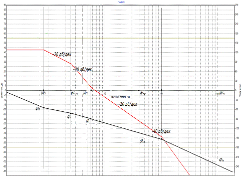 амплитудно-частотной характеристики (ЛАЧХ) разомкнутой системы
