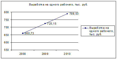 выработка продукции одним работником (в текущих ценах), тыс. руб.