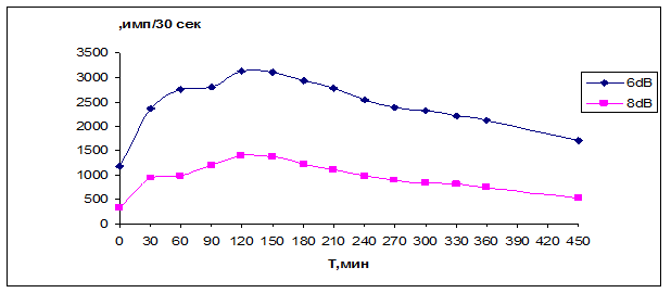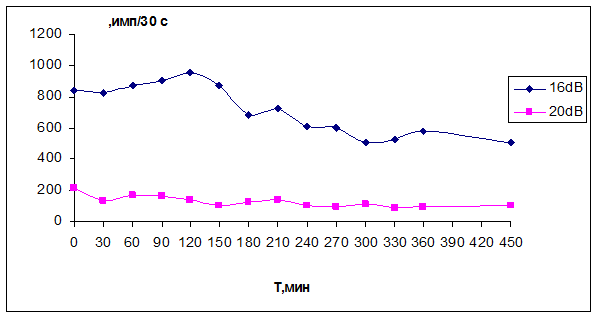 скорости счета происходил гораздо медленнее. Насыщение в титане происходило за