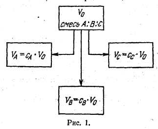 компонент А, В и С. Объем смеси V0 складывается из объемов чистых