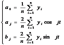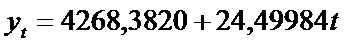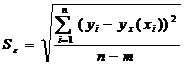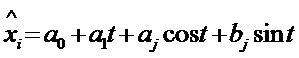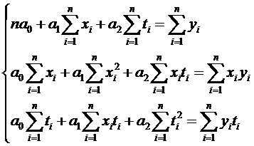 уравнению регрессии при подстановке в него значений xi и ti; yi –