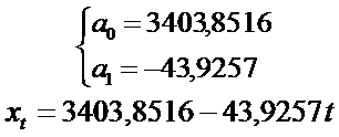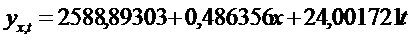 детерминации равная 0,9801 говорит о том, что величина y зависит от величин x и t, включённых в