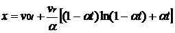 Выполняя интегрирование в (16) при линейном законе изменения массы (17),