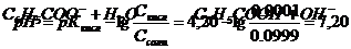 Применяя фенолфталеин, заканчивают титрование при рН=9, т.е. раствор бензойной