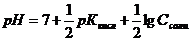 обычным формулам для вычисления рН растворов соответствующих электролитов.