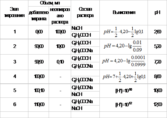 – значение рН раствора. Отдельные точки кривой титрования рассчитывают по
