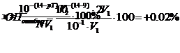 Всего взято на титрование NV1/100 ионов ОН-. Заканчивается титрование