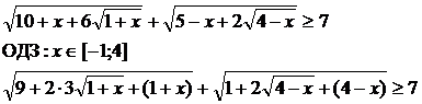 полного квадрата в подкоренных выражениях, либо разложения подкоренного