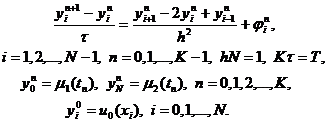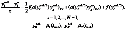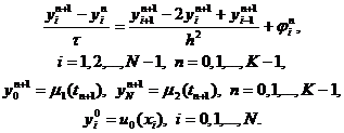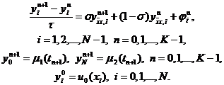 пользоваться явными схемами. Чисто неявная схема, линейная относительно yin+2,