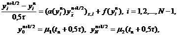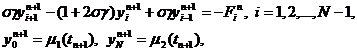 схема (15) является неявной схемой. Для нахождения решения yin+1