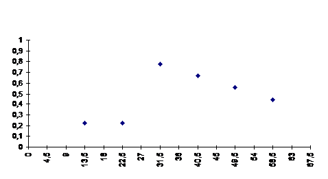 Коэффициент детерминации К = 1 - 121,25/169 = 0,28