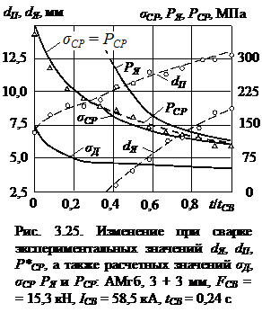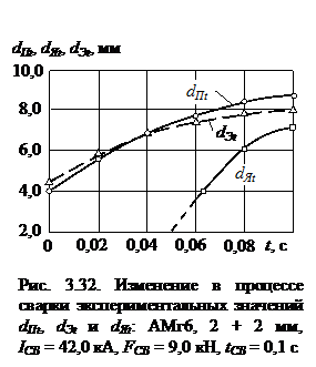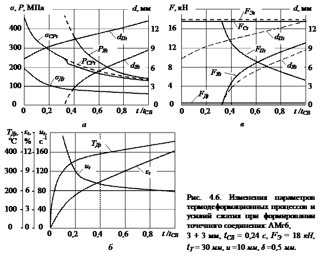 означает, что значение параметра относится к дискретному моменту времени t процесса формирования точечного сварного соединения.