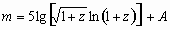 получится взаимосвязь звёздной величины m с красным смещением z и постоянной