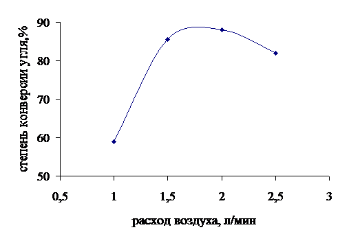 влияние скорости подачи окислителей на степень конверсии угля. Выбраны