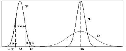 на рис.1. Тогда все точки ± 1 средней m (влево или вправо) не более чем на 3s .