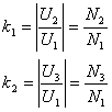 отношение абсолютных значений напряжений на концах вторичных и первичной