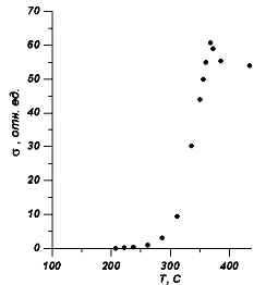 Эти данные хорошо согласуются с ростом проводимости в интервале 200ч360 °С. При