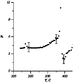 температурах Т?380°С число доступных позиций растет с ~3 до ~5. Это указывает