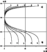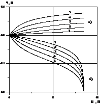 5. Зависимость анодной (а) и катодной (б) поляризации от напряжения при L=0,1