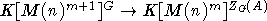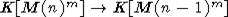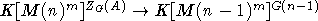 Каноническое отображение алгебры K[M(n)m] в K[M(n-1)m] (
