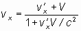 связанной с осью X. Используя формулу преобразования скоростей [1]