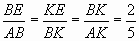 пересечения отрезков BF и AE. Найти отношение КЕ:АК.