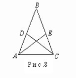 в треугольнике АВС (рис.6) АВ=ВС, то углы А и С равны и равны треугольники ВАЕ
