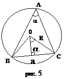 – центре описанной окружности. Точка О равноудалена от вершин: ОА=ОВ=ОС=R – радиус