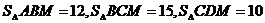 Площади треугольников АМВ, ВСМ и САМ – равны.