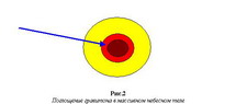 относительно разреженной (желтой) внешней части сфероида звезды гравитоны