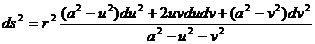 элемент (квадрат дифференциала дуги) плоскости Лобачевского в координатах u, v, равных расстояниям точки от