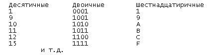 исчисления в двоичную и наоборот. Одна шестнадцатиричная цифра представляется