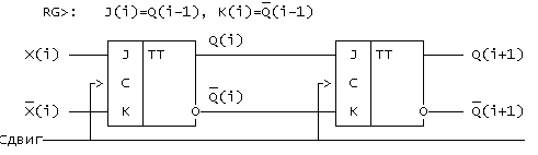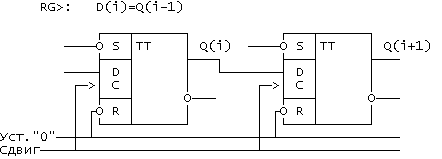 занесения из регистра RG1 в RG2 на вход V2 должна подаваться 1, а затем, для