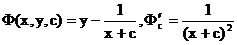 дифференцируемость функции Ф(X,Y,C) и дифференцируя Ф(x,f(x,c),c) по x,