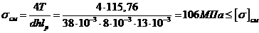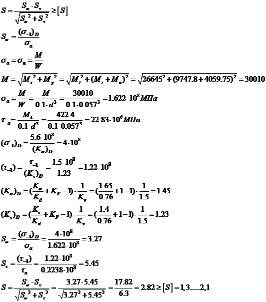 опасном сечении и сравниваем его с допускаемым значением(1,3….2.1)
