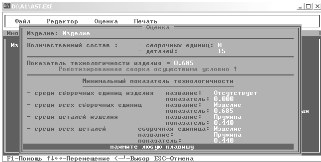 параметры и дать команду на подсчёт технологичности. Результаты расчёта