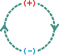 условно изображены два движущихся разноименных заряда (+) и (-).