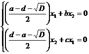 квадратного рівняння та розв’язків системи двох лінійних рівнянь в залежності