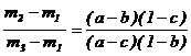 m2=c+a-ca, m1=b+c-bc.