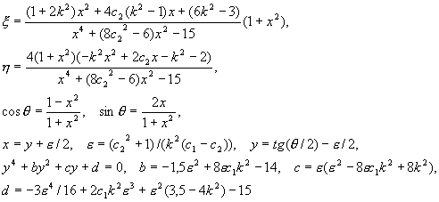 ξ=0, η=0, θ= θ(t), c12k4+2c1c2k2-1=0